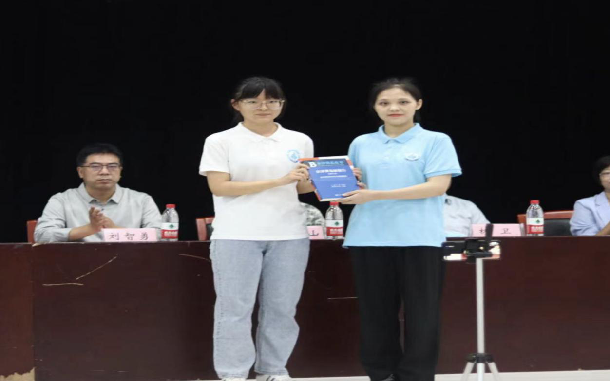言毕,她代表全体在校生向新生代表周润湫赠送了由全院师生精心挑选的、有助于新生成长的书籍,象征着城院学子学识的薪火相传,寄托着全体在校生对于新同学的美好希望。