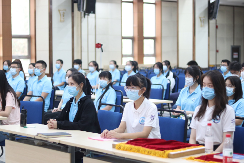 学生会执行主席张静怡同学作为第一会所 在校生代表向新生致辞。她分享了“目标导向”、“关联性”、“生活”三个词语,希望新生们虚心求学,勤于思考,努力提高个人能力,保持对生活的热情,管理课余时间,积极参加社会实践活动,在大学中度过一段有意义的青春。