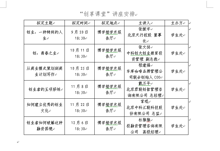 为方便同学合理规划课余时间,有针对性地选择讲座主题,现将本学期三个课堂的整体安排公布如下: