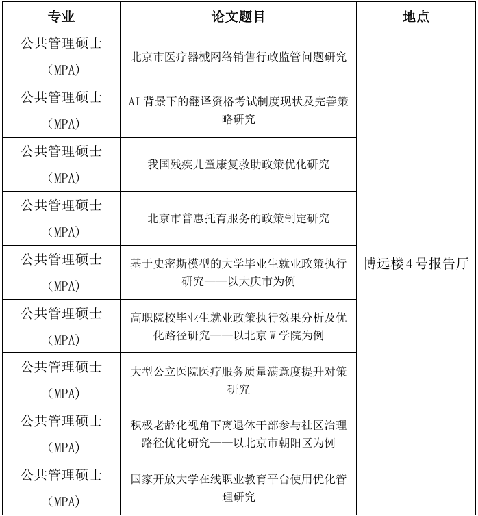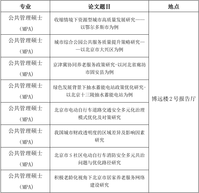 硕士学位论文答辩公告(MPA)