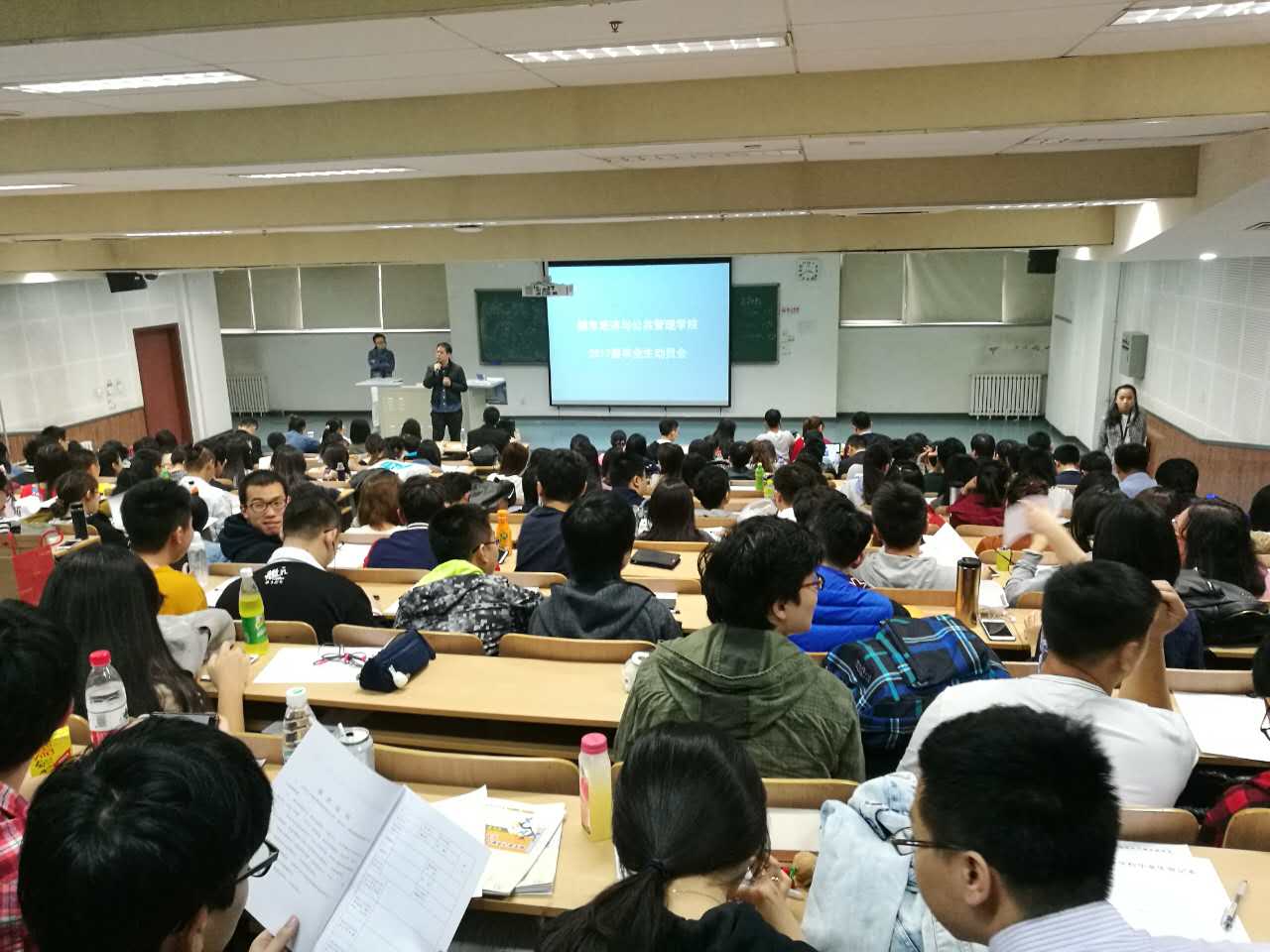 2016年10月19日下午,第一会所 2017届毕业生动员大会在博学楼第一阶梯教室顺利召开,旨在帮助处于就业初期感到迷茫的毕业生梳理就业政策、讲解办理流程、帮助毕业生答疑解惑,提升其就业竞争力。学院党委副书记杨曦、专职辅导员杨澜、学生处就业指导中心的富蕾以及全体2017届本科、硕士、博士毕业生参会。