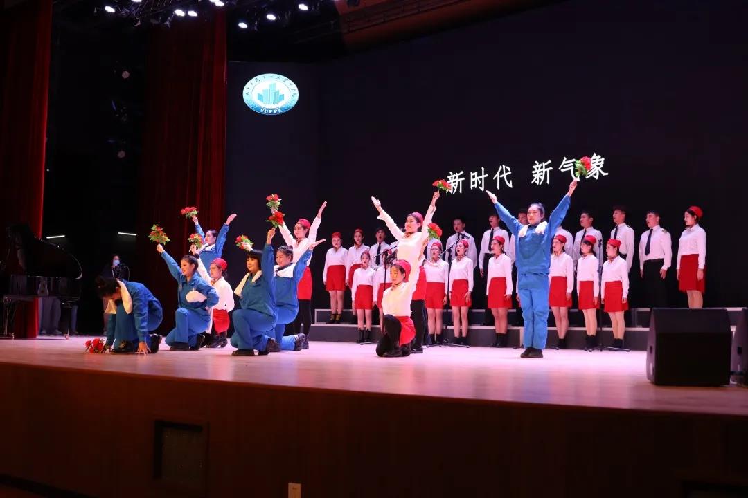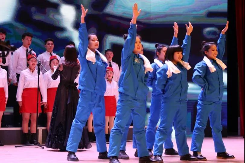 七点,轮到同学们上场了!舞台上,大家声情并茂地表演着:合唱队同学们在刘皓凝同学的指挥下放声歌唱;方天予、李建富、叶夏尔三位同学进行了声情并茂的朗诵表演;两侧是舞蹈演员精彩的伴舞。在这短短的几分钟内,所有人都尽自己最大的努力做到了最好。台上,精彩纷呈;台下,掌声雷动。