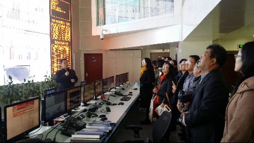 师生们首先来到城市管理管物联网指挥中心。城管执法局信息装备中心主任宋刚向大家详细介绍了基于感知、分析、服务、指挥、监察“五位一体”的城管物联网平台的智慧城管,包括城市环境秩序和资源感知平台、云到端的基础支撑平台和综合应用平台三大平台建设情况,与大家分享了“巡查即录入、巡查即监察”工作模式、感知数据驱动的高峰勤务模式、基于创新2.0的公共服务模式三大智慧城管新模式的理念、举措和实践探索。