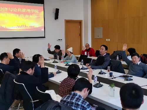 主持人宣布会议开始后,各位代表全体起立,奏唱国歌。随后,张国山院长作2019年度财务工作报告,简要介绍了2019年财务管理工作概况,详细解释了各项经费的支出,并结合预算及费用执行情况指出了学院经费管理中存在的问题,张国山院长表示,虽然2020年经费再度减少,困难仍在,但要迎难而上,努力推进执行。随后,于云鹏作分工会工作报告,从完成工作、经费使用、存在问题及规划三个方面总结了学院分工会工作,他表示要努力把分工会建设成为广大教师信赖的“职工之家”。