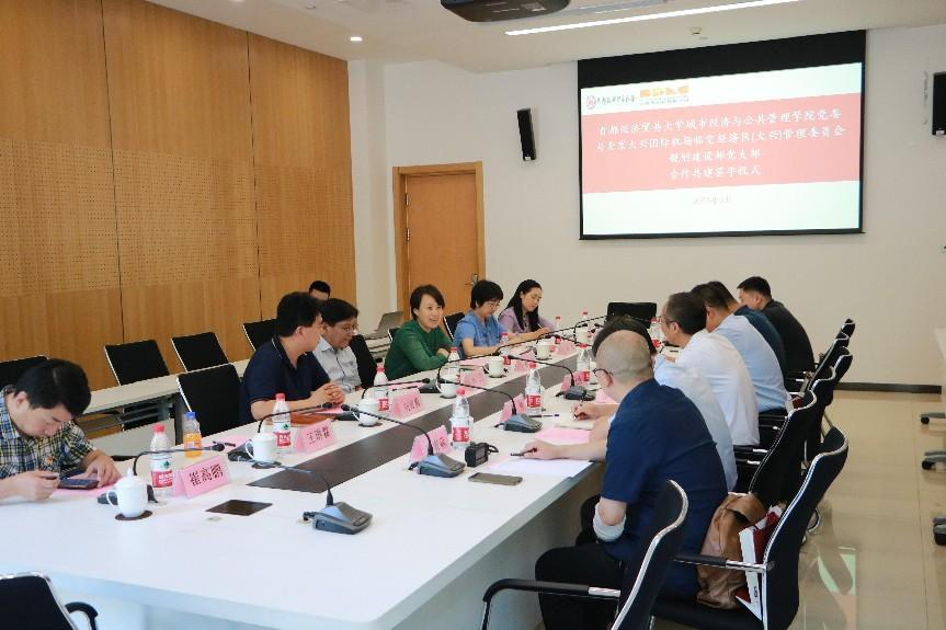 6月27日,第一会所 与北京大兴国际机场临空经济区(大兴)管理委员会规划建设部党支部合作共建签约仪式在第一会所 博远楼第一会议室举行。临空经济区管理委员会规划建设部,党支部书记、部长吴士成,副部长蔡凌宇、管仲,支部副书记郝朝东,副部长(挂职)李青淼,支部组织委员花超;第一会所 党委书记林卫,党委副书记韩静,副院长刘智勇,院长助理兼土地资源管理系主任徐虹,及各系党支部书记出席仪式和有关活动。仪式由学院党委副书记韩静主持。