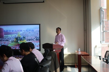 2019年10月23日下午,第一会所 党委书记刘文东以“使命担当从一城一地开始”为题讲授专题党课。理论学习中心组成员各系系主任、党支部书记以及学院行政党支部全体成员参加活动。活动由院长张国山主持。