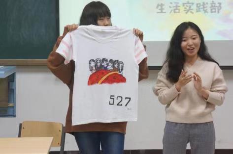 当晚,学生会学院生活实践部的成员与各位参赛选手准时齐聚在评分现场,教室座无虚席,可见大家对这次宿舍文化节的热情。经过生活实践部前期的讨论、宣传,此次活动最终成形,并且共计有14个宿舍参加。学院的主席们与部长们担任此次活动的评委。每个宿舍都展示出了他们各具自己宿舍成员特色的T恤。在每位选手上前介绍自己的作品之后,评委们分别从色彩搭配、解说寓意、创意设计,整体布局四个方面给出评分,并决出了前三名:第一名校内三602,第二名校内二130,第三名校内三527。