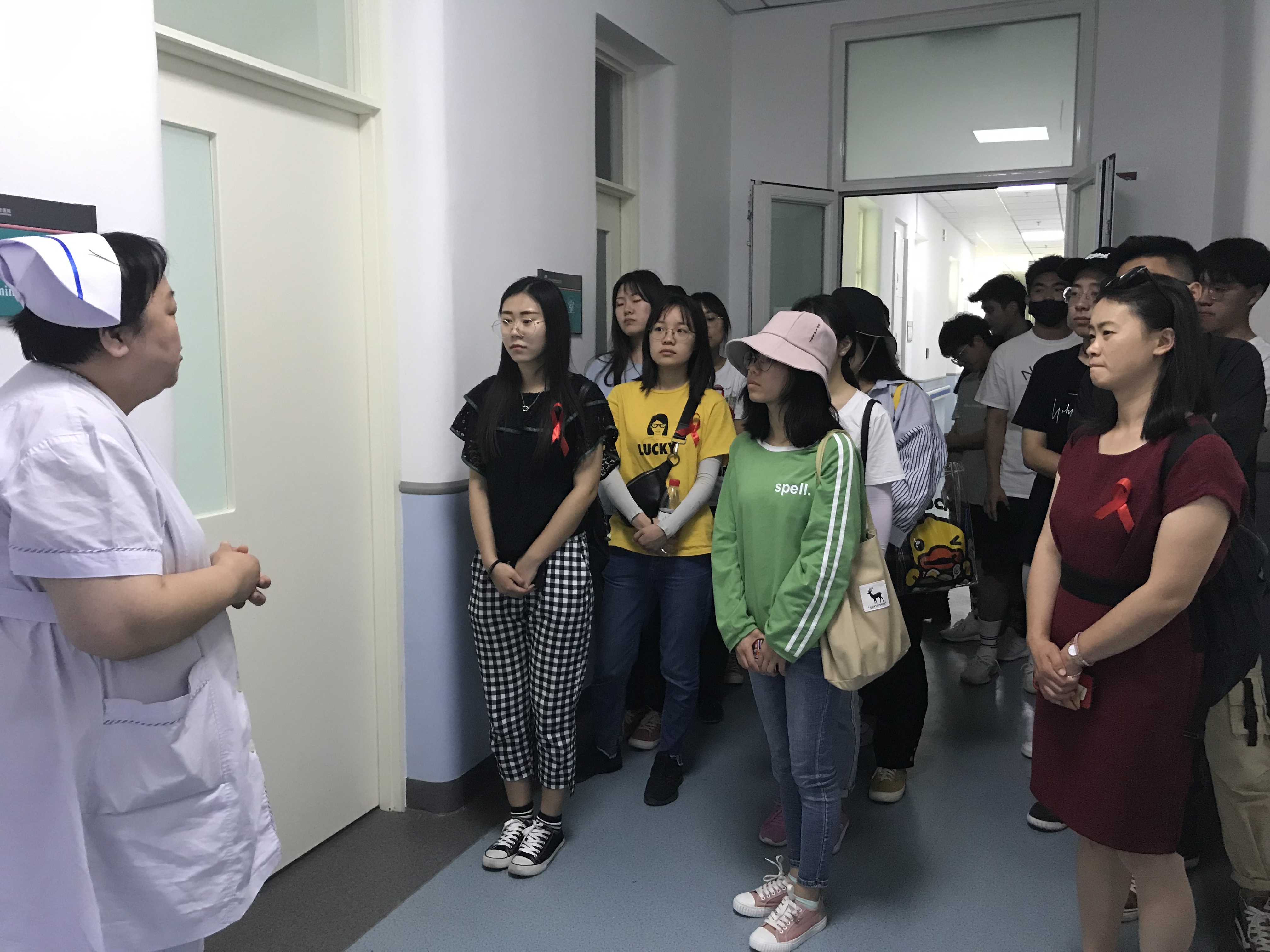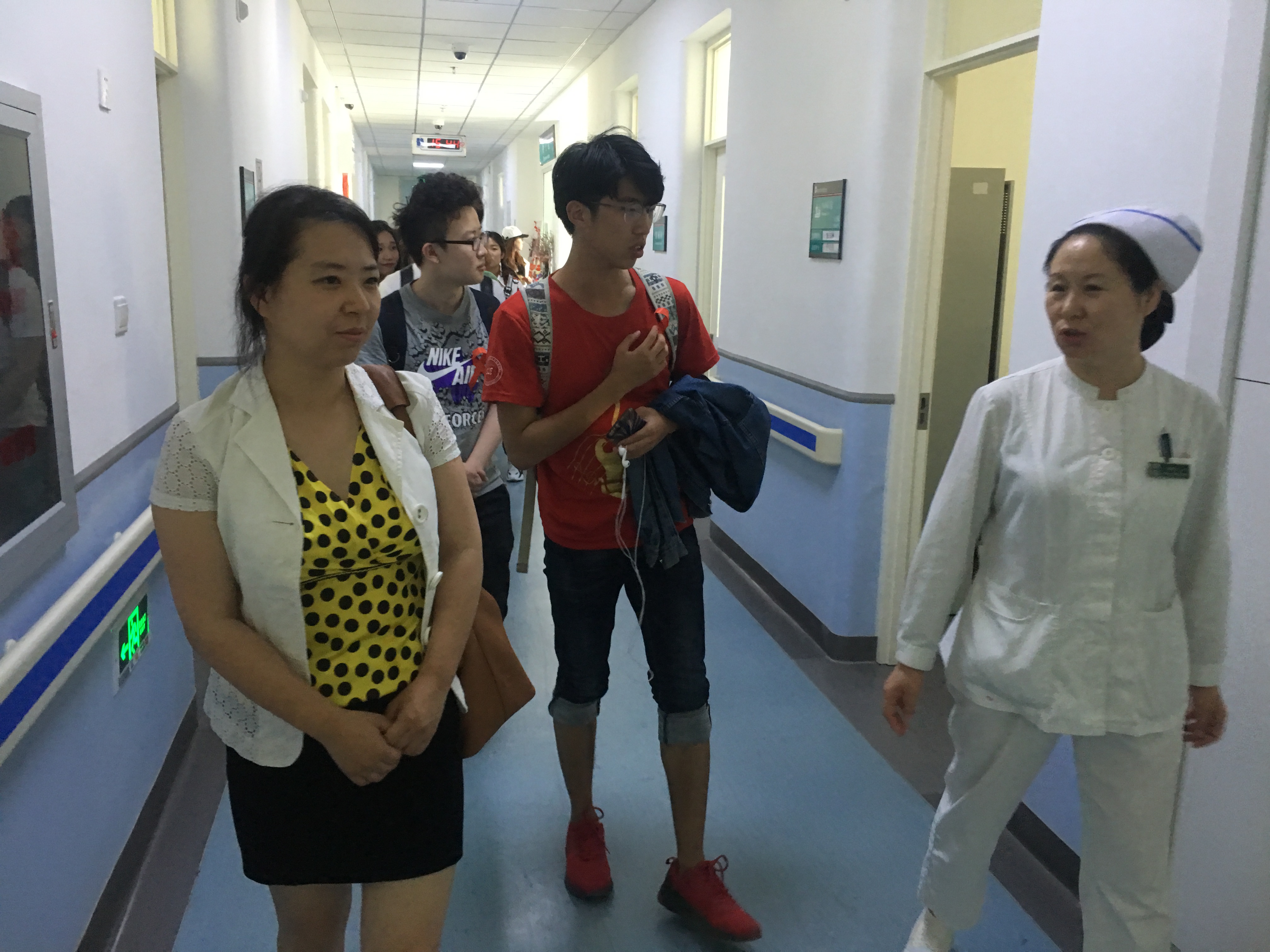 活动最后,由医院护士长带领同学们参观了佑安医院的感染一科、感染二科病房。同学们见证了医护人员对HIV病患者的细致耐心,也亲眼目睹了社会志愿者专程送来爱心消暑水果。