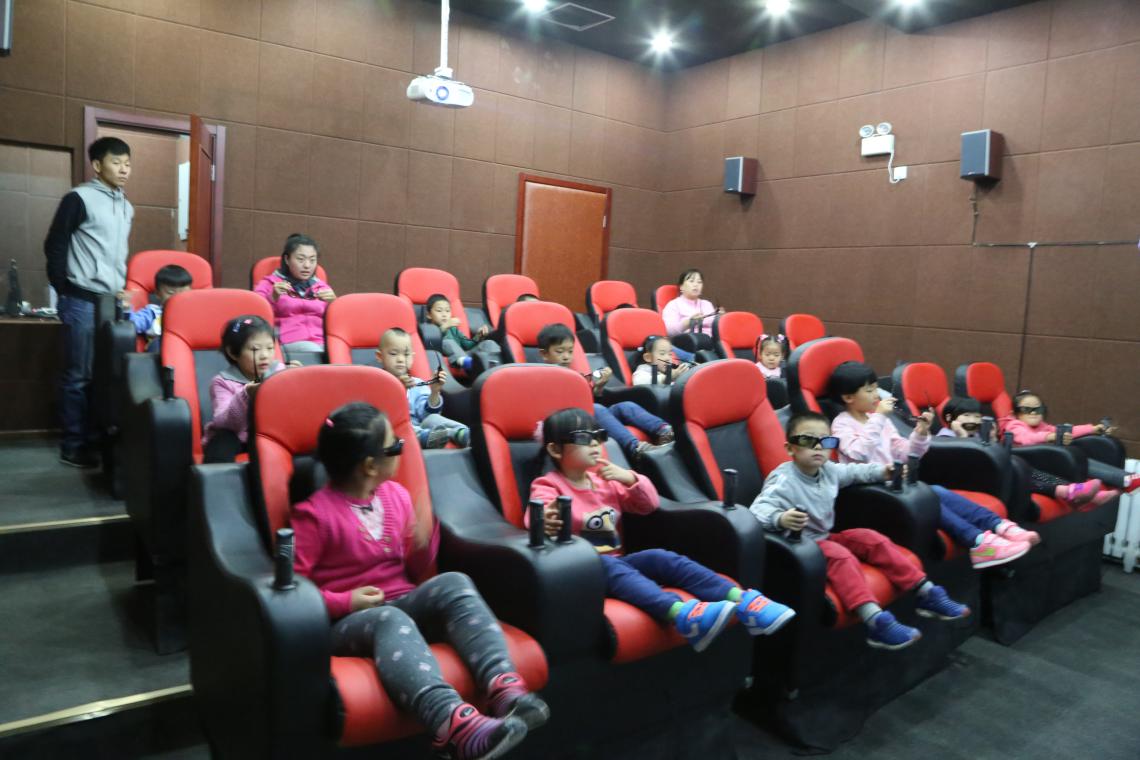 随后,小朋友们认真地跟随支部党员同学的讲解学习了地震成因以及自救知识并分组进行了5D电影体验。
