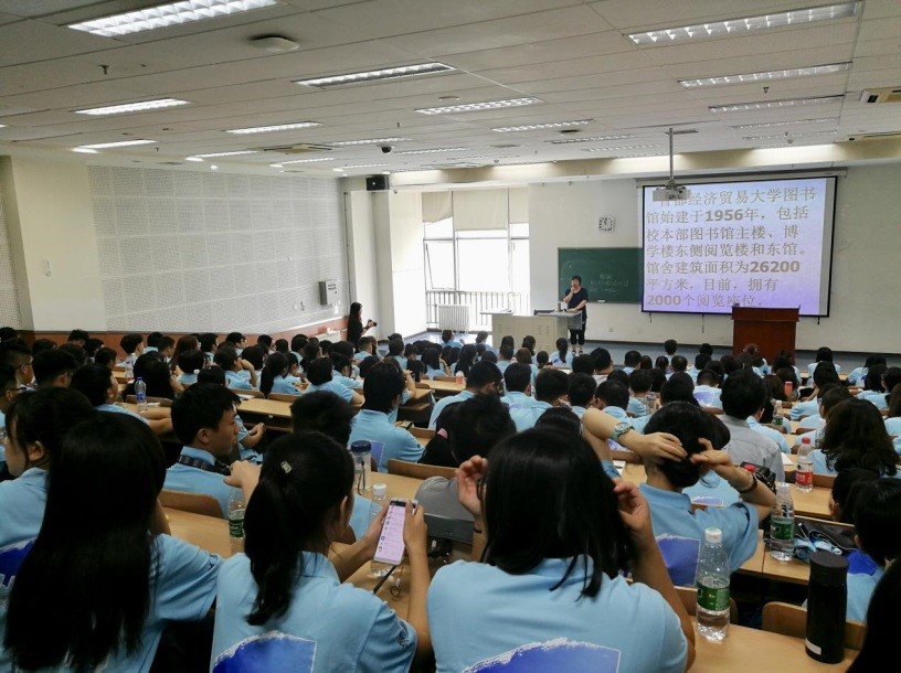 上午11时,第一会所 2018级全体新生在博学楼阶梯9教室聆听了学校图书馆资源及工具应用的讲座。学校图书馆的霍可为大家介绍了学校图书馆的馆藏及其资源分类,同时,还讲解了数据库和图书馆工具的使用。整个教室座无虚席,全体新生认真聆听。
