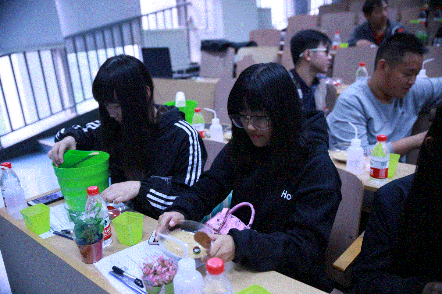 同学们认真制作多肉微景观