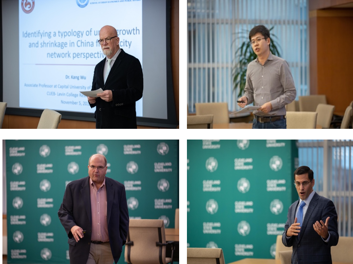 城市学院四名教师还就此论坛的机会,与克利夫兰州立大学副院长Robert Gleeson教授及负责本、硕项目主管、国际事务副院长及学术副院长等进行了会晤,相互介绍了两院的专业设置、课程安排、办学特色等,旁听了本科生城市地理学课程,并就落实已签署的学生交流互换合作协议及互派访问学者合作协议等内容展开深入讨论。此外,访问教师们还在克利夫兰州立大学的知名社区研究专家Dennis Keating教授的陪同下走访了克利夫兰市三处具有特色的城市社区发展的专业机构(Midtown Community Center, University Circle Inc, Shakers Community),实地调研了克利夫兰市的发展历程、空间规划、产业特色和社区管理经验,积累了丰富的城市治理案例素材,开阔了学术视野。