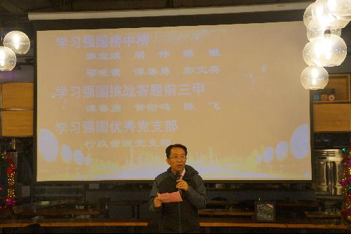 张国山对包括国际交流、学院MPA管理、行政工作等其他六个领域表现突出的个人进行了表彰,值得一提的是,学院对学习强国APP学习情况进行了表彰。刘文东宣读了获得学习强国榜中榜优秀学员奖、挑战答题冠亚季军奖、优秀党支部奖的颁奖词,希望大家向他们看齐,铭记初心使命,家国情怀。只争朝夕,以梦为马,不负韶华。