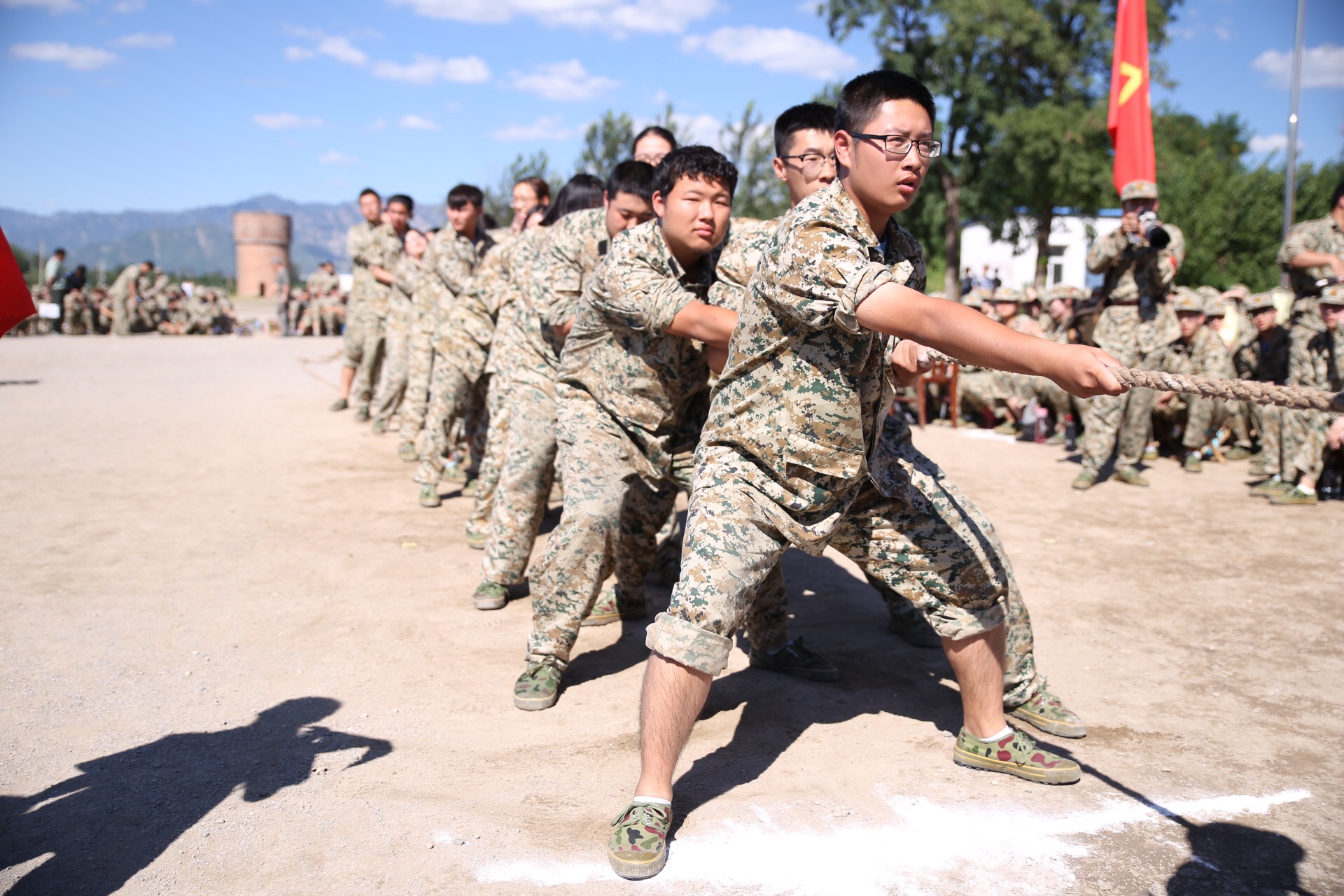 短暂休整后,在季军争夺赛中城院学子以永不放弃的城院精神坚持到了最后,战胜对手勇夺季军,也为城院军训战绩榜上再添荣耀一笔。赛后,看着队员们被绳子磨出血的手掌,看着队员们指甲被磨断的手指,看着队员们一双双无论艰难险阻紧握绳子的双手,全体同学倍受鼓舞,用最热烈的掌声欢迎战士们归队,庆祝这一可战绩!