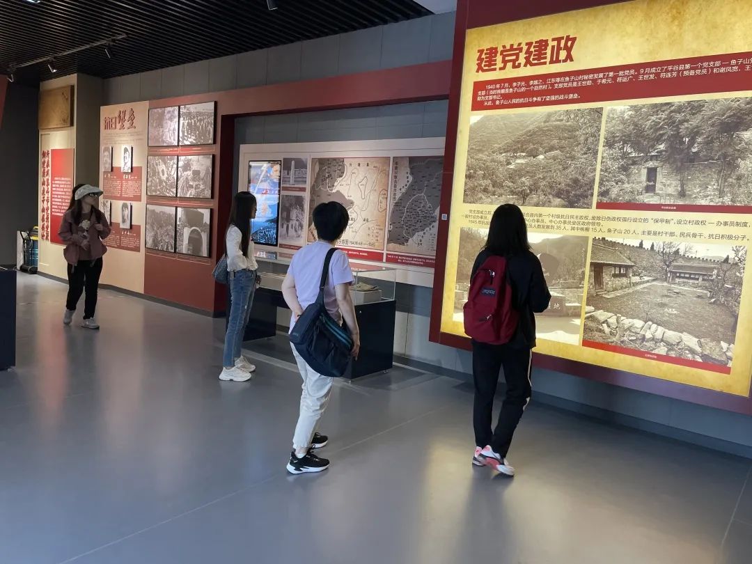 重温入党誓词之后,党员教师参观了鱼子山抗战纪念馆。纪念馆陈列面积400平方米,内容以冀东地区抗日战争史实为背景,以平谷及周边地区人民抗日战争史实为线索,展出革命文物近百件,珍贵历史照片200多幅。馆内还展示了当年抗战边区领导焦若愚同志的题词,还有原冀东军区司令员李运昌为鱼子山抗日战争纪念馆捐献的抗战时期的衬衣、围巾和照片等9件珍贵历史文物。鱼子山抗日战争纪念馆通过大量实物、照片及文字说明,生动形象地展示了在中国共产党领导下,抗日军民反压迫、反侵略、求解放的斗争历程。