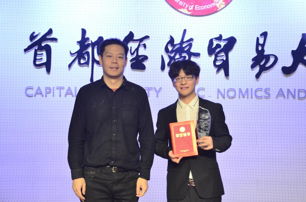 激动人心的颁奖环节。经过紧张激烈的现场展示、评委打分、观众线上投票环节,最终获得三等奖的是朱东旭、李哩莉同学、孙天智;获得二等奖的是刘轶、高萌萌;获得一等奖的是赵鹏。最佳人气奖被李岩霏摘取。杨澜、于云鹏、杨曦分别为获奖同学颁奖并合影留念。