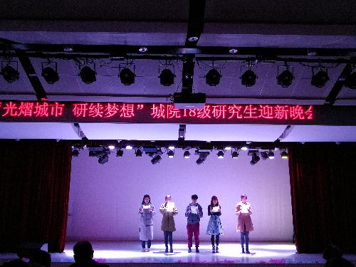 2018年11月7日晚7点,第一会所 2018年“光熠城市 研续梦想”研究生迎新晚会在大学生活动中心隆重举行。城市学院2017及2018级研究生欢聚一堂,共同观看了精彩纷呈的文艺表演。 图1 迎新晚会大合照 迎新晚会由李洪广、袁平主持。王德起在晚会开始前致辞,表达对晚会参与人员的感谢,同时也送上学院领导对研究生新生的关心和祝福,鼓励研究生们在以后的学习生活中珍惜时光,顽强拼搏,努力书写精彩人生。致辞完毕,观众以热烈的掌声感谢学院领导和老师的关心、祝福和勉...
