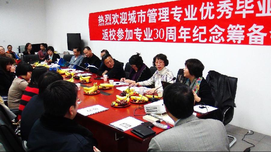 “城市讲坛”第八讲 30周年续辉煌 城市经济管理系供稿 2013年10月29日晚18:00—22:00,第一会所 城市运行与应急管理实验中心,来自城市管理专业1985级-2011级的优秀毕业生及在学生代表30余人,大家欢聚一堂,共同畅谈城市管理专业的光辉历史和未来前景。 会议的主题是城市管理专业30周年的回顾与展望。负责城市管理专业建设的谭善勇老师主要从二个方面作了主题发言:一,城市管理专业的历史与现况。城市管理专业始于1984年的政治经济学专业(城市管理方向),1985年正式招收城市管理专业本...